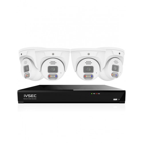 The IVSEC 850B/D IP security cameras feature an 8 Megapixel Image Sensor with a 2.8mm Lens offering 110° Viewing Angle. Built in IR / White Light / Flashing Red Blue Lights gives you the option of either Colour Night Vision, IR Night Vision and/or Flashing Deterrent.